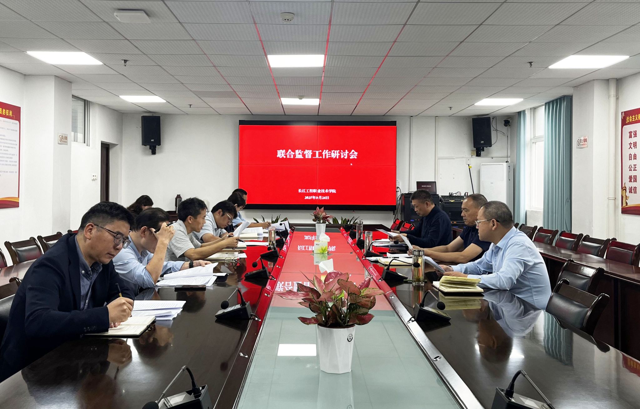 为进一步整合监督力量,形成监督合力,推动学校重点工作任务落实见效,9月24日,学校纪委召开联合监督工作研讨会,传达学习有关联合监督方面的文件制度,通报有关重点事项监督情况,研究部署联合监督工作。党委副书记、校长杨道远出席会议并讲话,驻校纪检监察组组长、党委委员、纪委书记刘合强主持会议,党办、纪委综合室、组织人事部、校办、质管处、财务处、审计处等部门主要负责人参加会议。