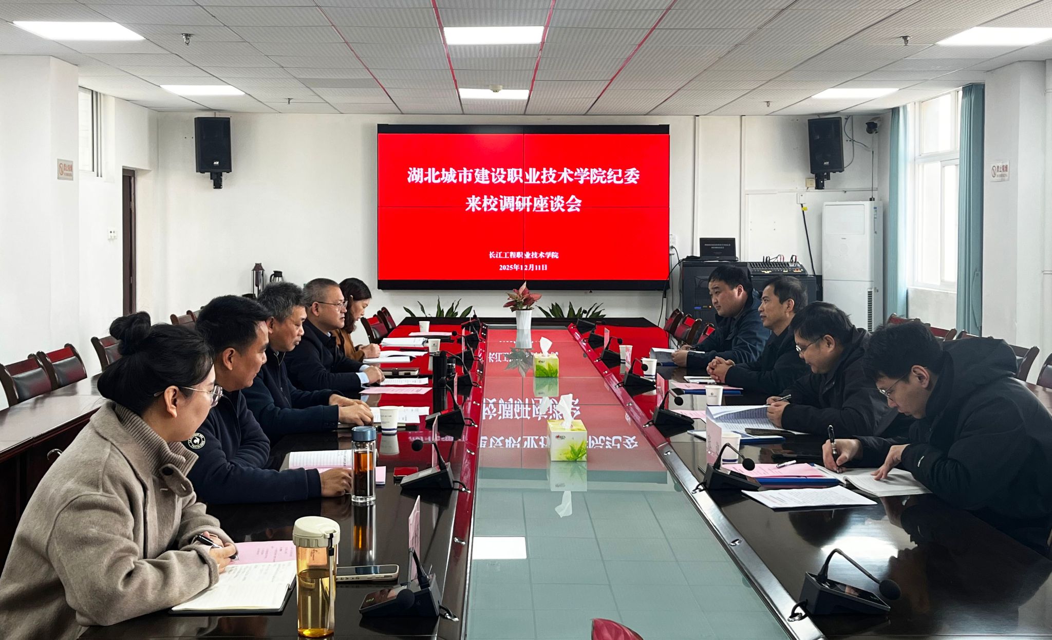 12月11日,湖北城市建设职业技术学院纪委书记金中凡一行4人来我校调研交流纪检监察工作。校党委书记马大奎、驻校纪检监察组组长、党委委员、纪委书记刘合强热情接待了金中凡一行。